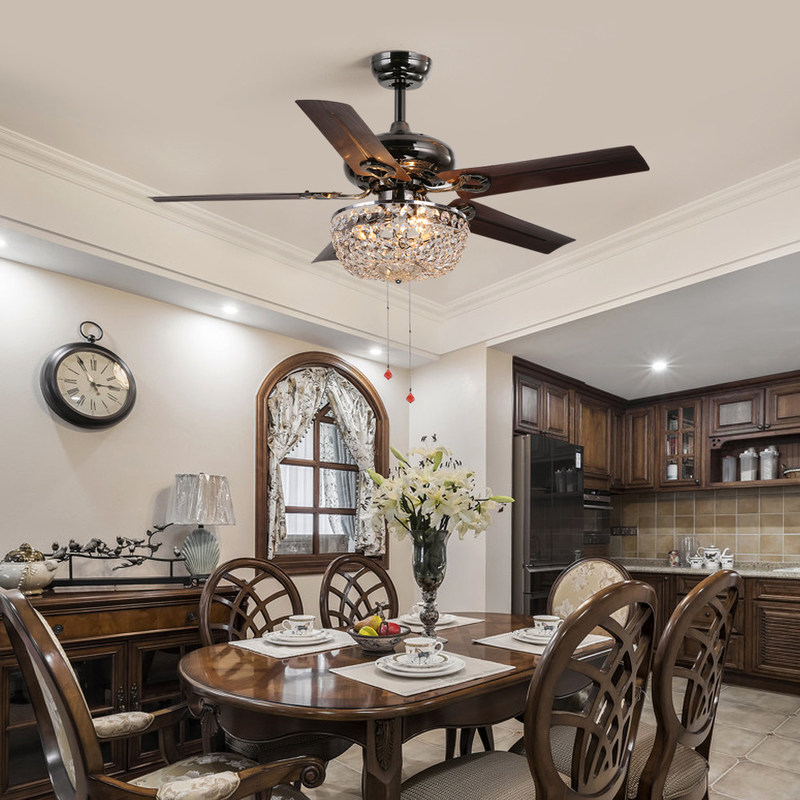 सजावटी लिविंगरूम कार्यालय धातु ब्लेड प्रकाश के साथ चेन क्रिस्टल सीलिंग फैन खींचो
